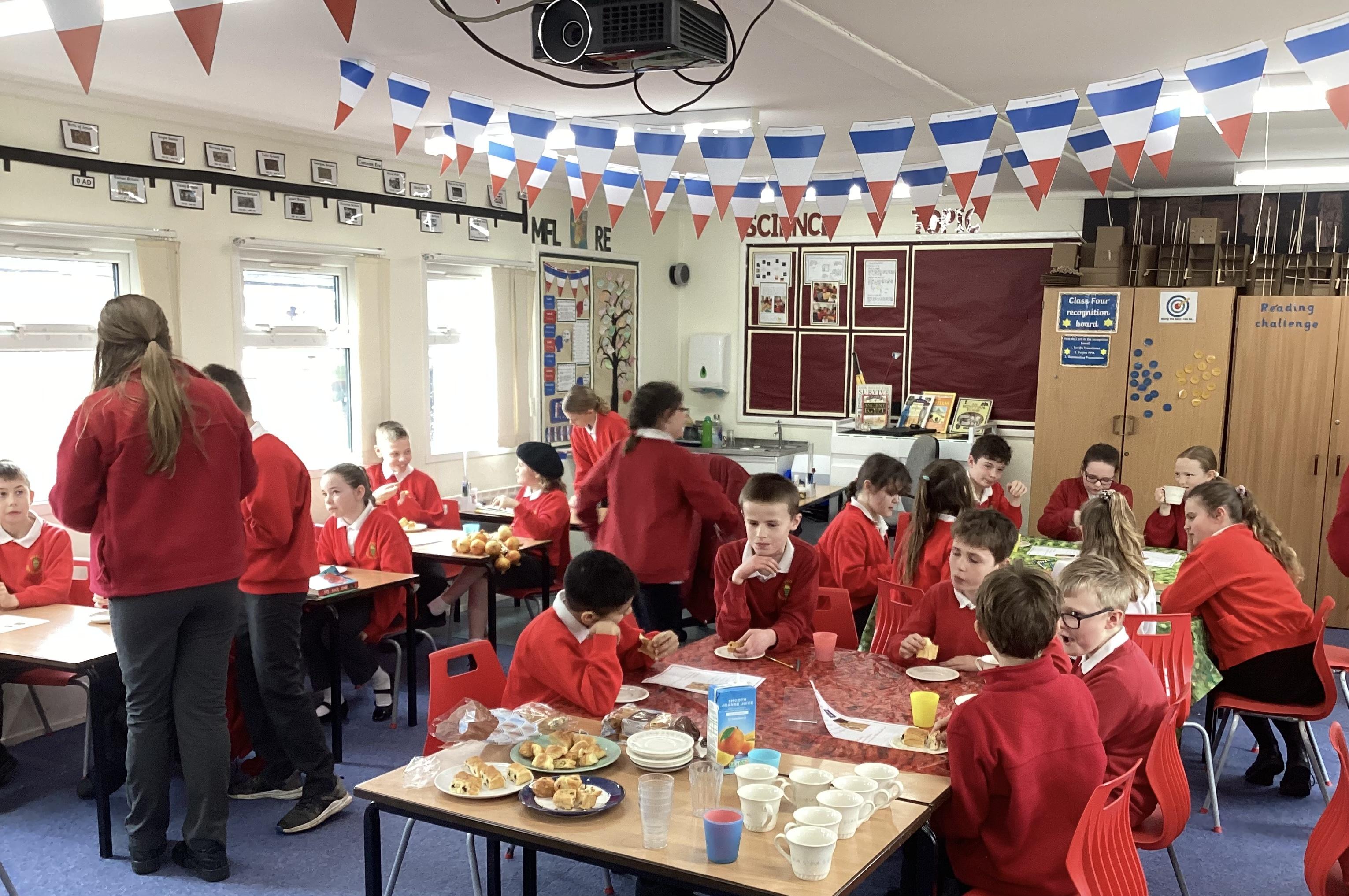 The children in Class Four really enjoyed their French Day. They ran a Café, serving pain au chocolats, brioches, croissants with jus d’orange.