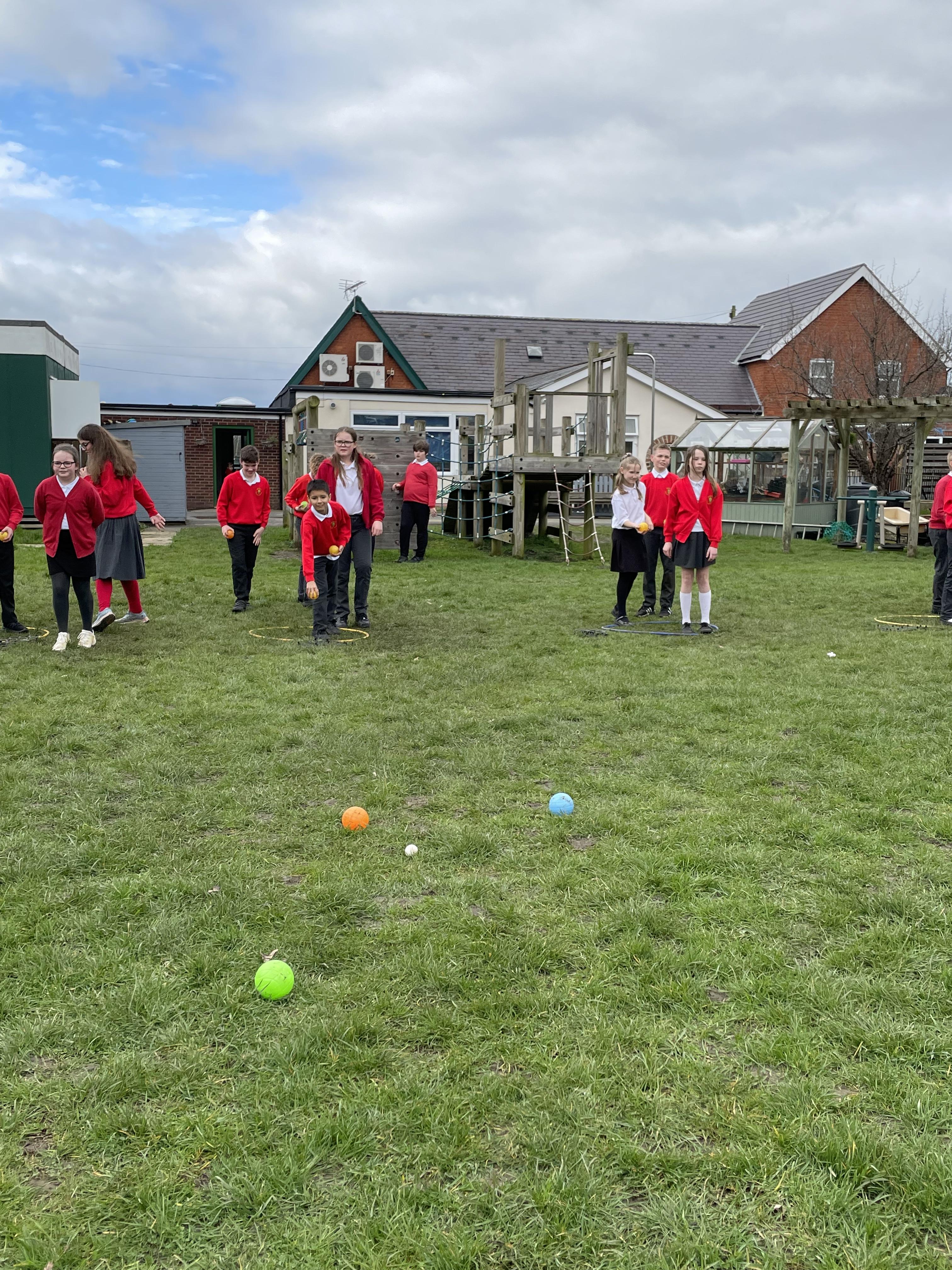 The Class Four Sports Leaders also showed the rest of the school how to play pétanque (boules). They asked if we could do this everyday!