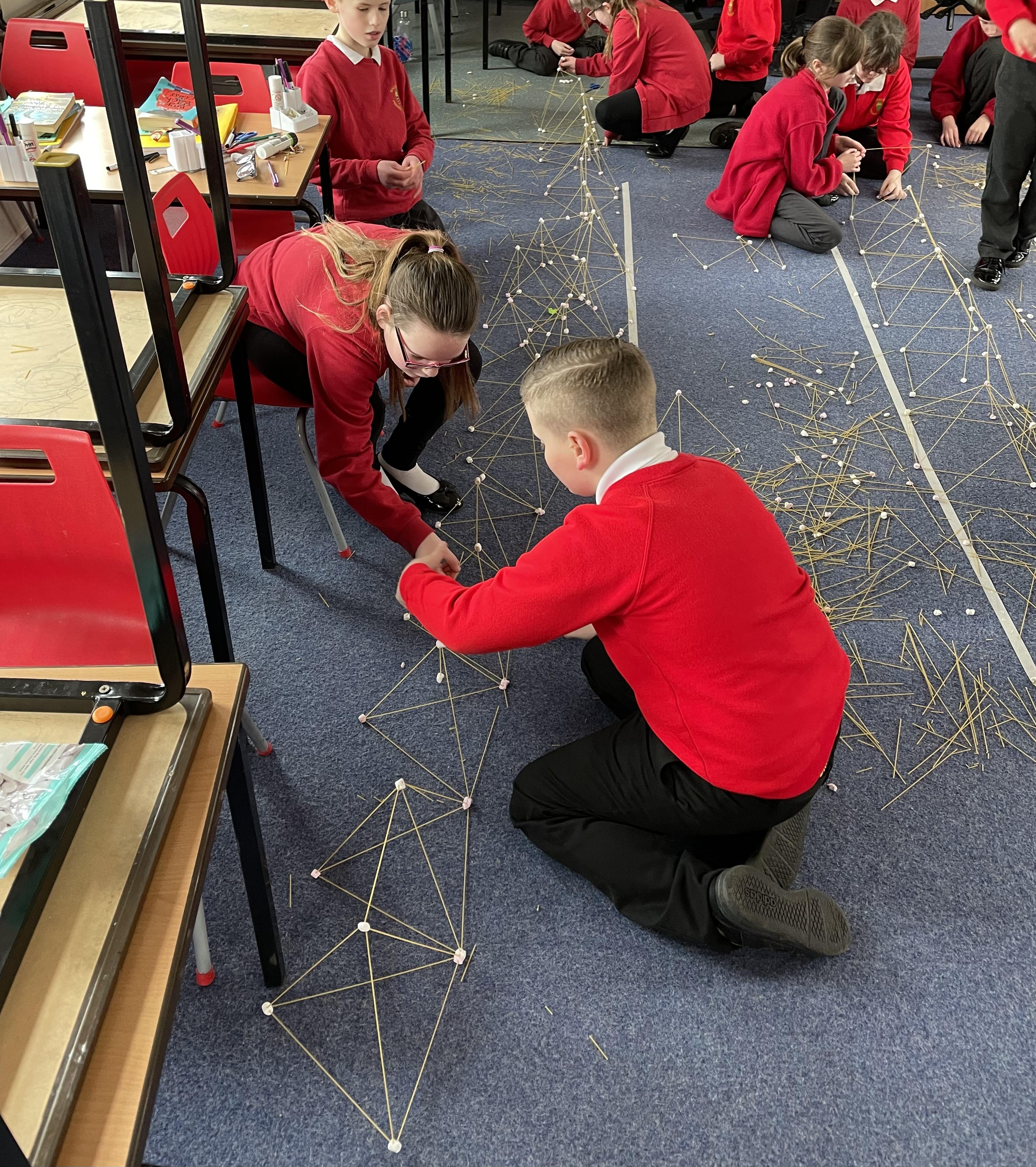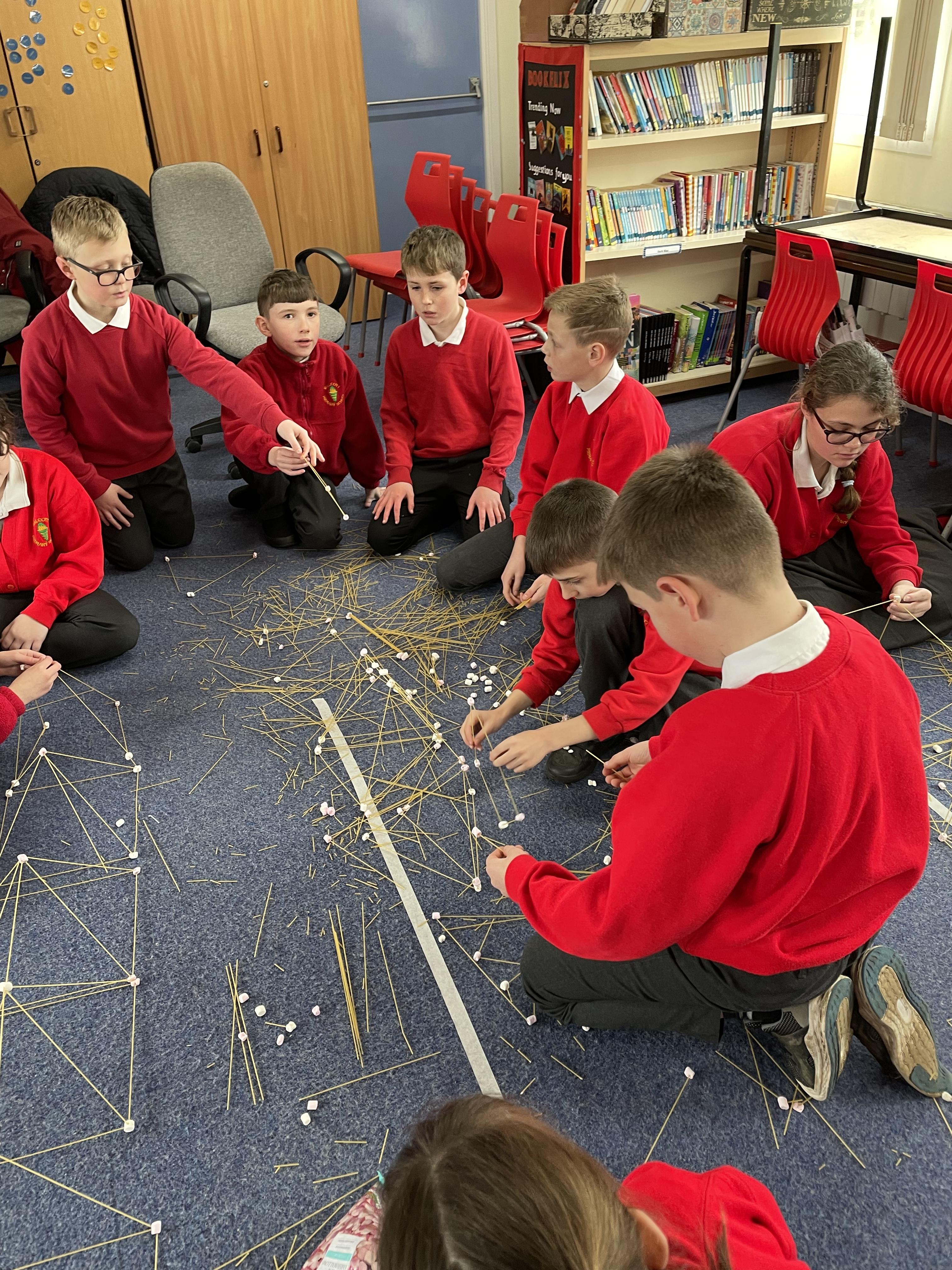 To celebrate World Maths day the whole school took part in practical, hands on Maths activities. Class Four had to build the strongest structures and longest bridges from Spaghetti and mini marshmallows. We then measured the structures. We also took part in loop card games, estimating sweets in a jar amongst a variety of other activities!