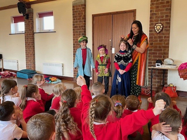 In March Sunita Patel from the 'Indian Experience' visited Walcott. We had great fun learning about Hindu beliefs and cutoms. We particularly enjoyed dressing up in traditional Indian costumes and dancing.